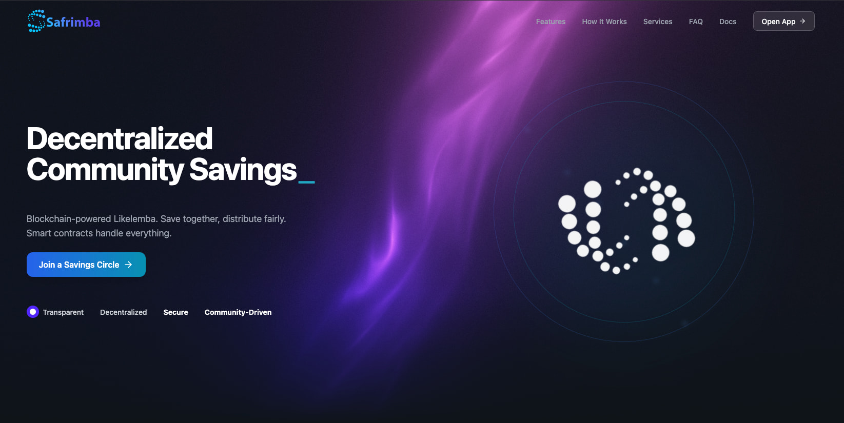Visit docs Safrimba - Decentralized Savings Circles | Blockchain-Powered Likelemba